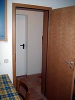 Das Bett ist 1,40 * 2,00. Ein 3-türiger Kleiderschrank bietet genügend Platz für Kleidung und Utensilien.