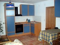 4 Plattenherd mit Ceranfeld und Backofen, Kühlschrank mit separatem Eisfach, Kaffemaschine, Wasserkocher