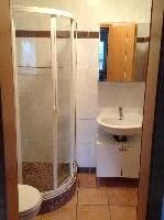 Im Bad befindet sich neben WC und Waschtisch eine geflieste Dusche mit Glasabtrennung. Das Bad ist komplett gefliest.